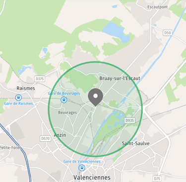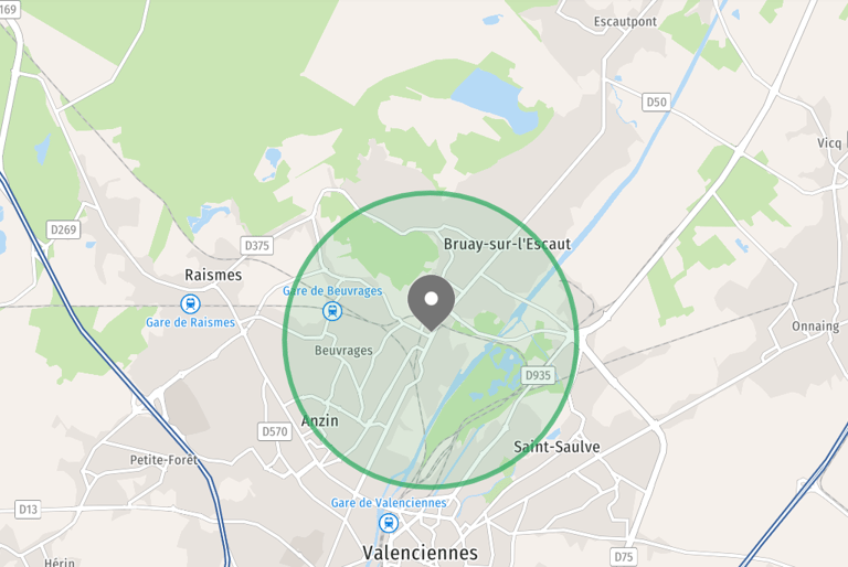 Anzin, Beuvrages, Bruay Sur Escaut, Condé Sur Escaut, Escautpont, Fresnes Sur Escaut, Marly, Onnaing, Petite-Forêt, Quarouble, Raismes, Saint-Saulve, Valenciennes, Vicq.