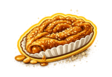 Une pâtisserie croustillante, délicatement enrobée de miel et saupoudrée de sésame. Un classique ultra gourmand.