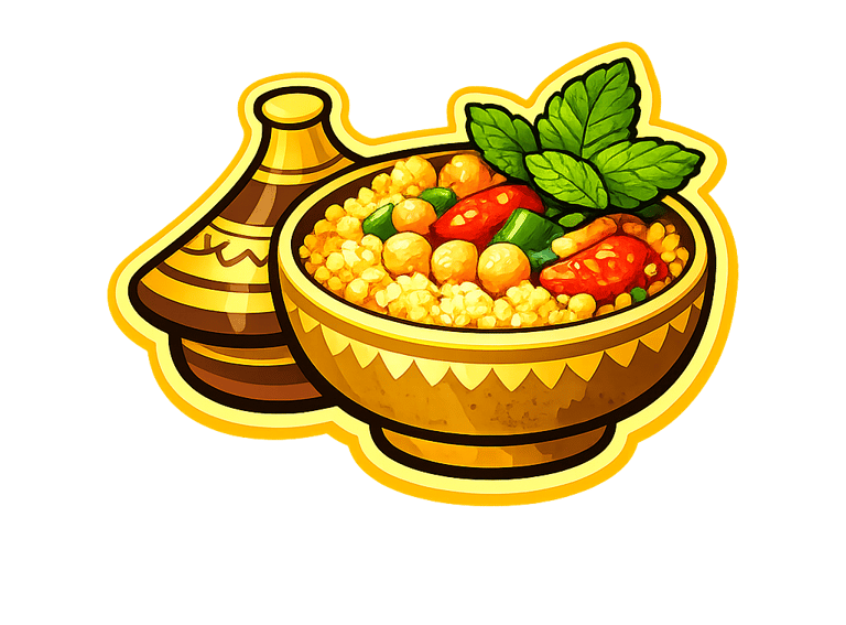 Un bowl bien garni de semoule, avec morceaux de bœuf savoureux, légumes mijotés et bouillon parfumé.